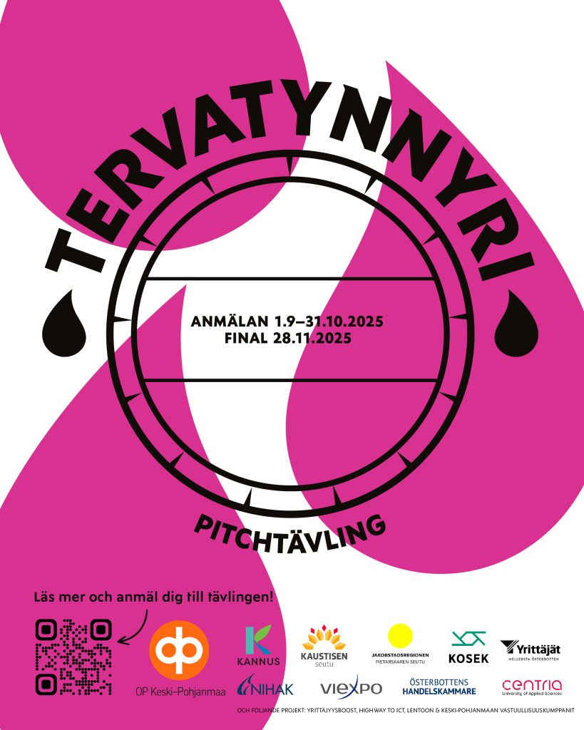YrittäjyysBOOST-hanke on myös tänä vuonna mukana toteuttamassa Tervatynnyri pitchauskilpailua muiden yhteistyökumppaneiden kanssa.