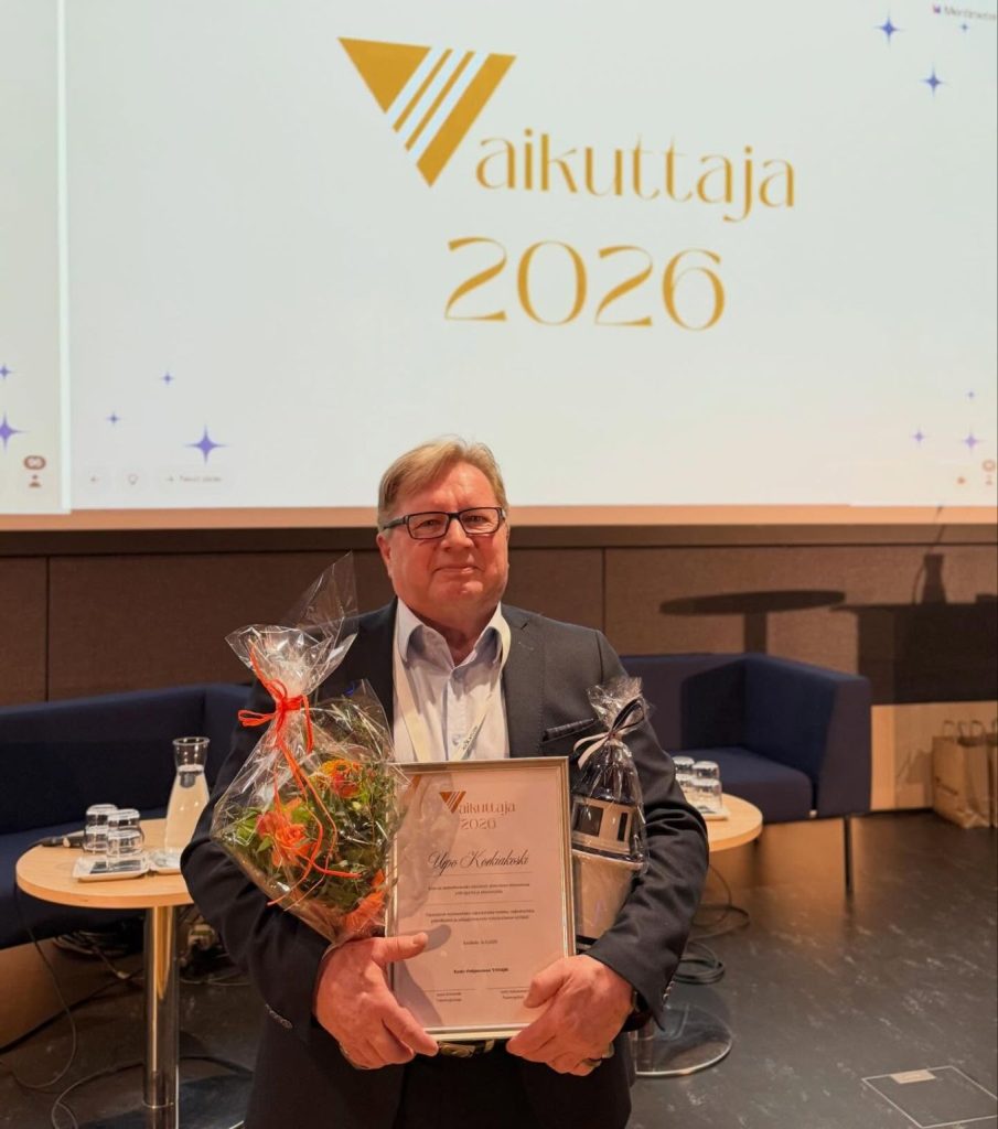 Keski-Pohjanmaan Yrittäjät myönsi ensimmäistä kertaa jaettavan Vaikuttaja-tunnustuksen Nivalasta kotoisin olevalle Urpo Korkiakoskelle.