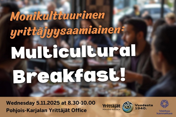 Monikulttuurillinen yrittäjyysaamiainen pidettiin 10.9.2025 Pohjois-Karjalan Yrittäjien toimistolla.
