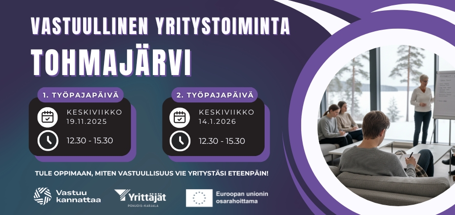 Yritysvastuun työpajapäivät Tohmajärvellä 19.11.2025 alkaen.