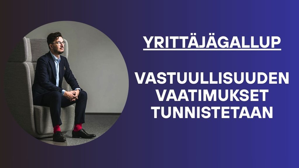 Vastuullisuusvaatimukset arkipäivää 59 %:lle pk-yrityksistä. Lue Suomen Yrittäjien asiantuntija Antti Turusen kirjoitus aiheesta. (28.1.2026)